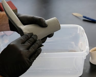 O Acabamento é a etapa manual onde preparamos a peça impressa para a pintura. Nós dedicamos tempo e atenção a este processo, que envolve a remoção de suportes e o tratamento cuidadoso da superfície.
